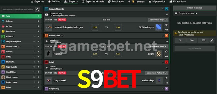 A aposta S9Bet oferece aos jogadores a experiência mais conveniente de apostas em eSports!